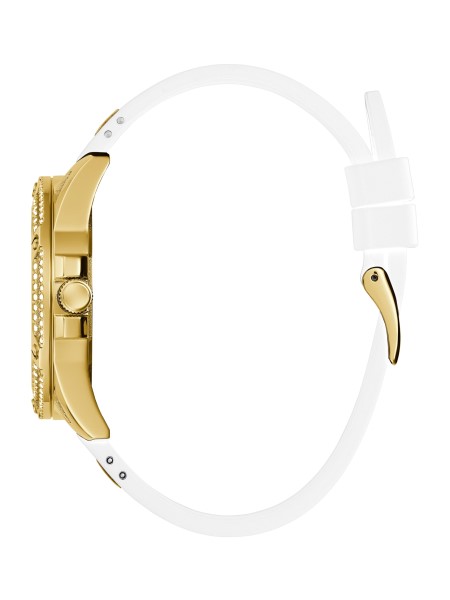 Ez A Merész óra, Amelyet úgy Terveztek, Hogy Kitűnjön, Nagy, Arany Tónusú Kivágott Tokkal és Elbűvölő, Többfunkciós Számlappal Rendelkezik, Lenyűgöző átmetszett Részletekkel és Kristályos Díszítéssel. Rugalmas Szilikon Pánttal Egész Napos Viselet.