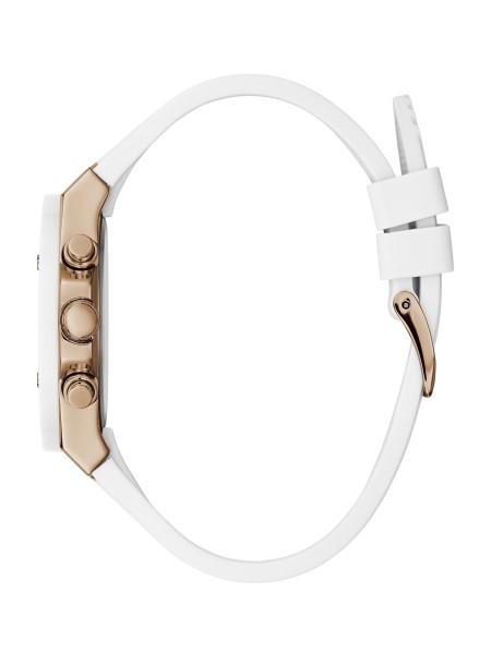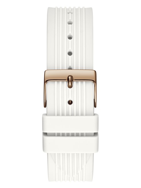 Frissítse Megjelenését Ezzel A Lenyűgöző órával, Amelyet Rózsaszín Arany Tónusú Tokkal és Fehér Napsugárral Ellátott Többfunkciós Számlappal Terveztek. Texturált Fehér Szilikon Szíjjal Kiegészítve.