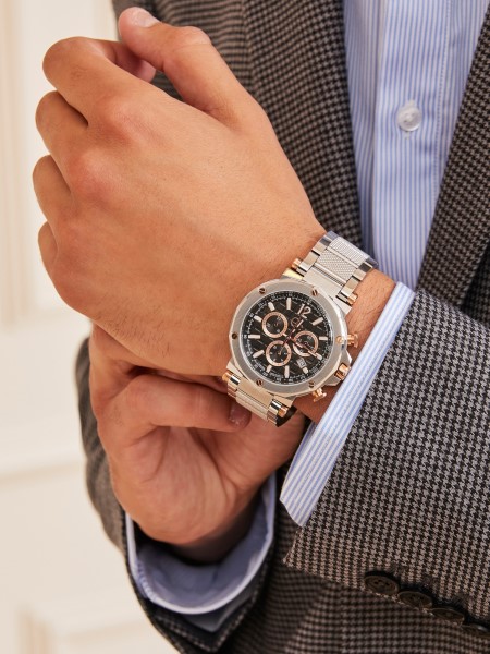 használd Ki A Gc Szellemét Ezzel A Rendkívül Részletes Ezüst Kronográftal Tónusú Fekete Guilloché Számlappal Díszített Rózsaszín Arany Díszítéssel, Amely Megkülönböztető és Feltűnően Férfias Sziluettet Kínál Az Ezüst Tónusú Linkkarkötőn Rózsa-arany Pvd Díszítéssel A Legjobb Svájci Precizitás és Egyedi Minőségi Kiadó Mindenlaki Stílusa: ezüst Változat: