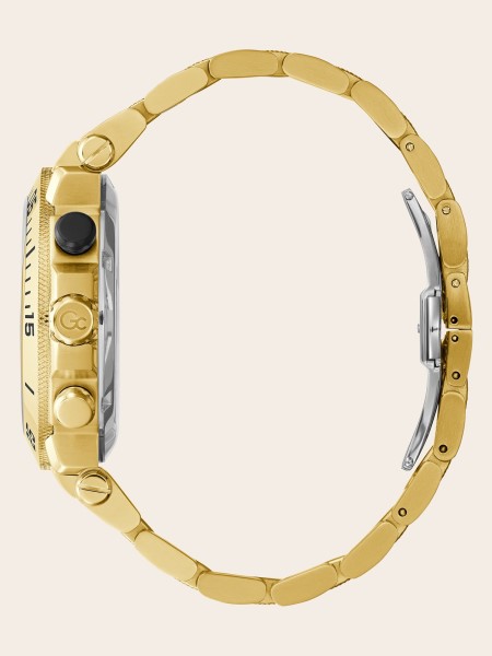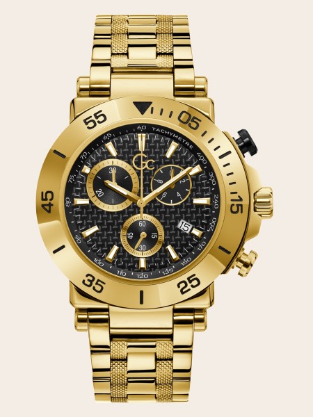 fejezze Ki Magát Ezzel A Túlméretezett, Modern Megjelenéssel A Legikonikusabb Gc Kronográf, Csiszolt és Polírozott, Teljesen Sárga Arany Tónusú Háza Hozzáillő Maratott Kerettel, Valódi Szénszálas Számlap Fordulatszámmérővel és Három Alszámlálóval, Valamint Teljesen Sárga Arany Tónusú Fém Karkötő Rögzítőcsattal. A Legjobb óramutatóbb Svájci Górcibb Svájci Kivételes Minőségű Szerkezet és Egyedi Dizájn Jellemez.arany Változat: