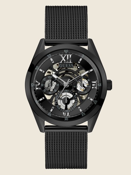 Style meets functionality, perfect for work to weekend. This black multifunctional watch features a matte dial, stainless steel mesh and a sleek polished bezel.