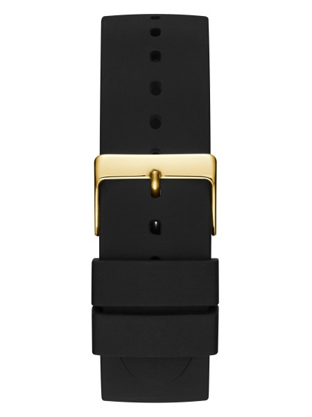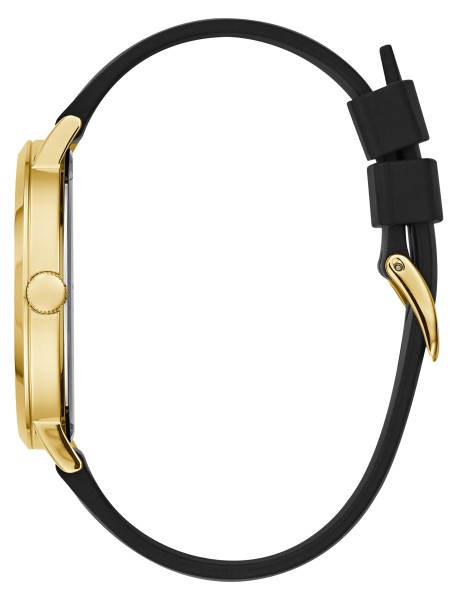 Keep your style sleek with this analog watch, featuring a black silicone strap, gold-tone triangle dial and logo detail. Gold-tone case.