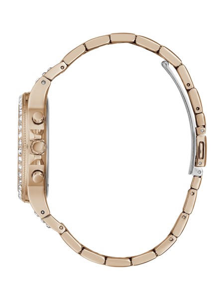 Az Elegancia Minden Ebben A Lenyűgöző, Rózsaszínű Arany Tónusú Időmérőben, Amelynek Háza Körül Csillogó Strasszokkal és A Többfunkciós Számlappal Van Elhelyezve. Csiszolt Link Karkötő Fejezi Be.