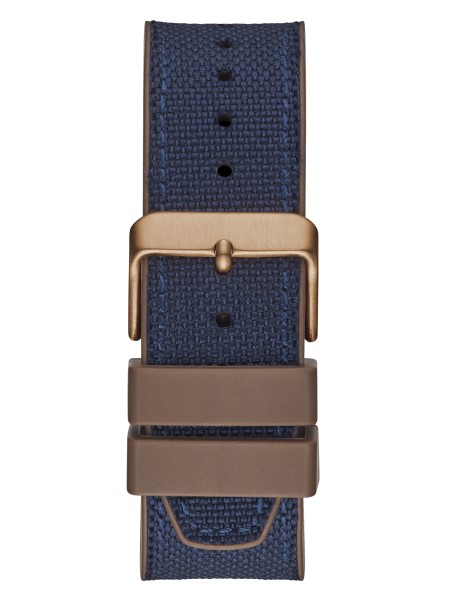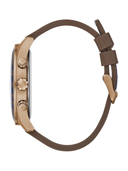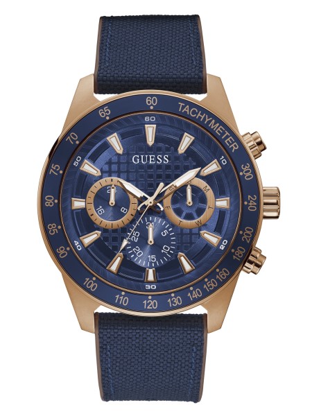 Egy Szemet Gyönyörködtető, Többfunkciós óra, Rózsaszín Arany Tónusú Tokkal, Kék Előlappal és Számlappal. Kék Vászon Kényelmes Kombinációjával, Barna Szilikon Pánttal.