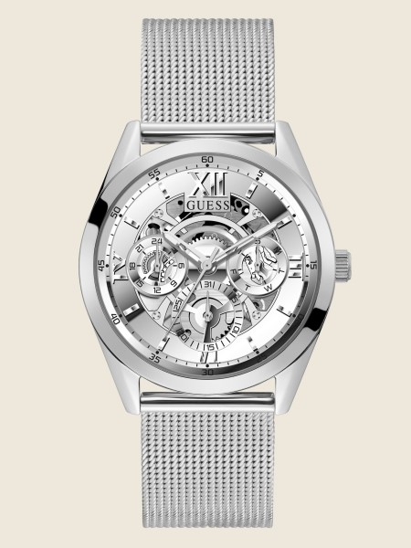 Style meets functionality, perfect for work to weekend. This silver-toned multifunctional watch features a matte dial, stainless steel mesh band and a sleek polished bezel.