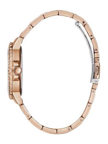 Öltöztesse Fel Megjelenését Ezzel Az Elegáns, Rózsaszínű Arany Tónusú órával, Amelynek Előlapja Elegáns Strassz Díszítéssel Büszkélkedhet, és Többfunkciós Funkciókkal Rendelkező Gyöngyház Számlappal.