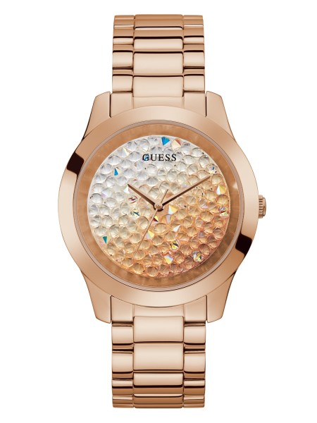 Öltözz Fel Minden Nap Ebben A Csillogó Analóg órában, Amelynek Ombre Hatású, Rózsa Arany Tónusú Strasszkővel Díszített Számlapja és Polírozott Acél Karkötője Van.