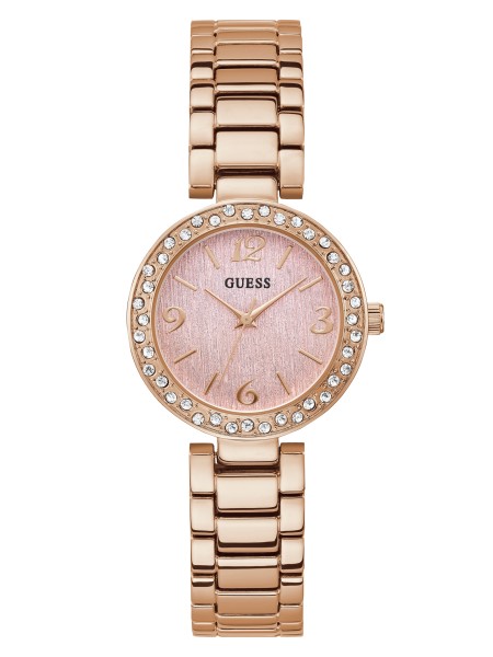 Ez A Minimalista Stíluselem, Ez A Finom óra Strassz Díszítéssel A Kerek Kereten és Elegáns órajelzőkkel A Rózsaszín Arany Tónusú Analóg Számlapon.