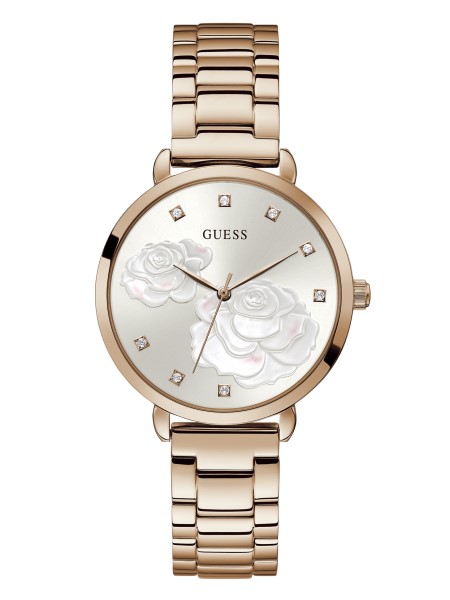 Elegáns óra Rozsdamentes Rozsdamentes Arany árnyalattal, Rózsa Mintával A Számlapon és Eredeti Swarovski Kristály Jelzőkkel.