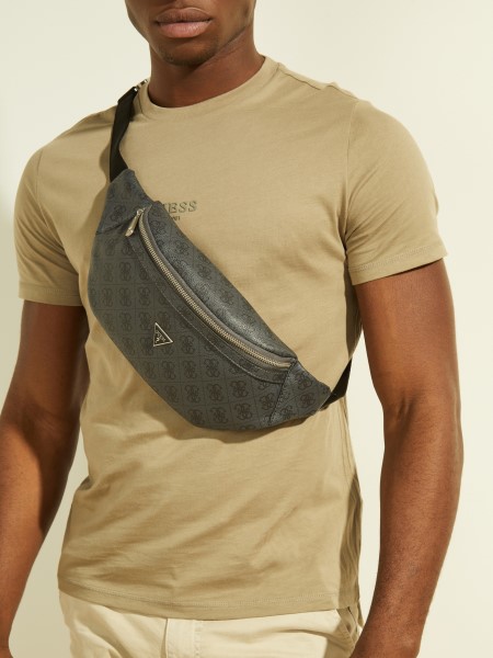 Classic faux-leather belt bag featured in an allover Quattro G logo print, with a water-resistant front zip closure, logo detail and an adjustable waist strap. Made with recycled materials.