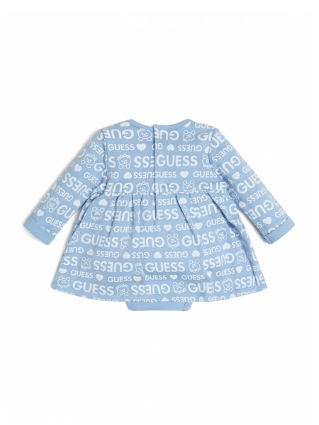 A charming long-sleeve dress for your little darling, this bodysuit features an adorable allover bear print, overlaid flared skirt and snap-button closures.