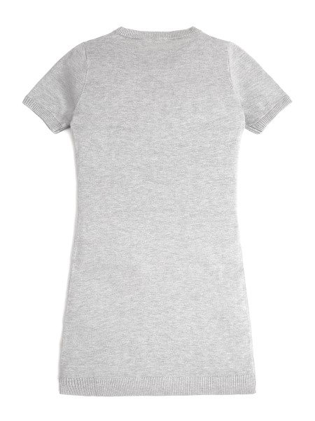 Her new everyday favorite, this knit sweater dress is designed with short sleeves and a logo detail outlined in faux-pearl accents.