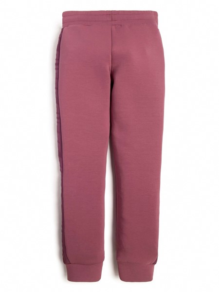 For activity or lounging, these pants are featured in a monochrome design with a drawstring waist, logo tape down the legs, side slip pockets and ribbed cuff hems. Contains organic cotton fibers.