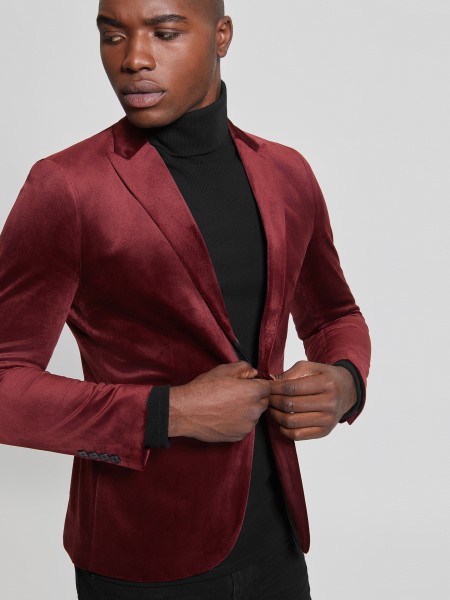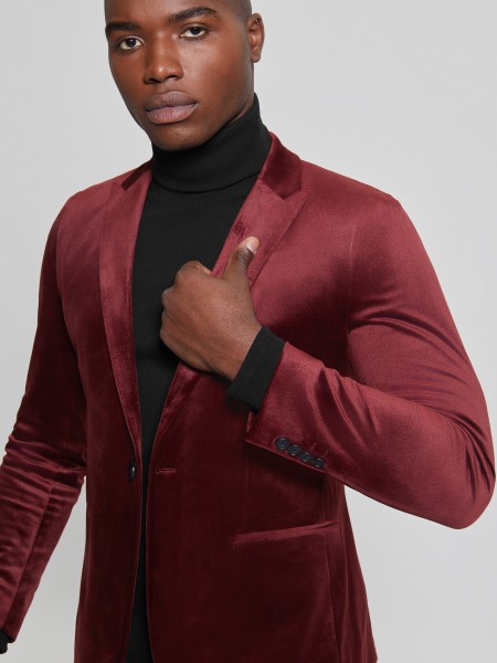 Adjon Luxus Megjelenést Megjelenéséhez Ezzel A Bársony Blézerrel, Amely Rovátkolt Hajtókával, Gombos Elülső Záródással és Elülső Zsebekkel Rendelkezik.