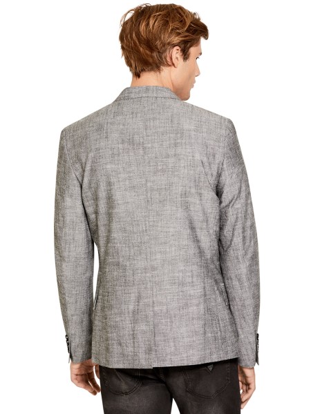 Texturált Blézer Rovátkolt Gallérral, Bélelt Zsebbel és Műzsebekkel. Többgombos Mandzsetta Megjelenéssel és Két Elülső Gombos Zárással Rendelkezik.
