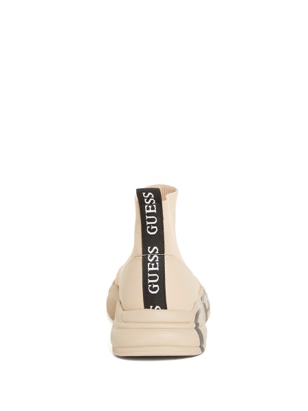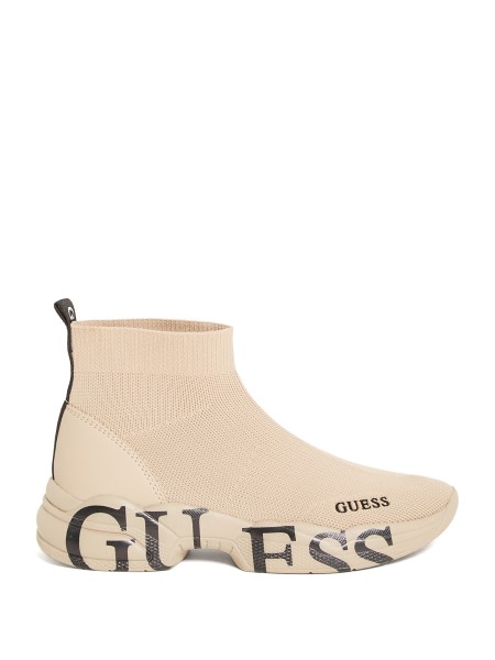 Igényes Megjelenés, Amely Készen áll Az Utcára. Ezek A Kötött Tornacipők Vaskos Talppal, Logóval, Magas Szárral és Logónyomattal Ellátott Hátrésszel Rendelkeznek.