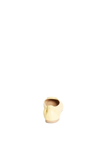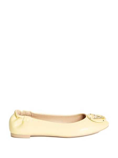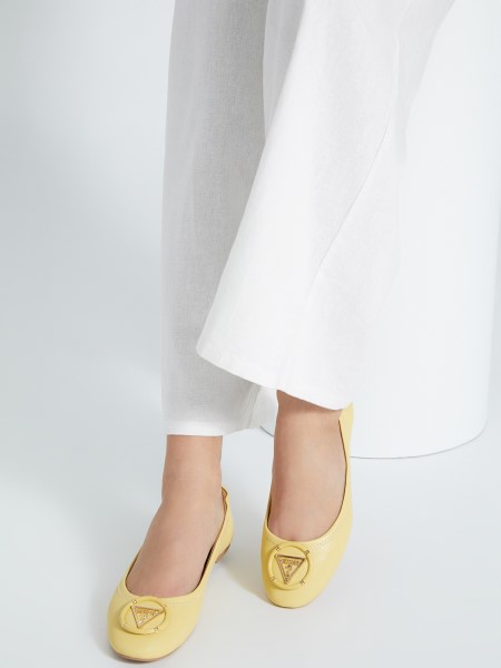 Ezek A Műbőr Balettlakások Kiválóan Alkalmasak Munkára Vagy Hétvégére, Arany Tónusú Háromszög Logó Emblémával, Körbefutó Részlettel, Domború Háttal és Enyhe Sarokkal.