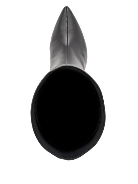 Ezek Az Elegáns, Kötelező Csizmák Térdig érő Sziluetttel, Hegyes Orrral, Tűsarkúval és Tágas Fazonnal, Felhúzható Kialakítással Rendelkeznek. Kapható Műlakkbőr Vagy Krokodil-dombornyomott Kivitelben.