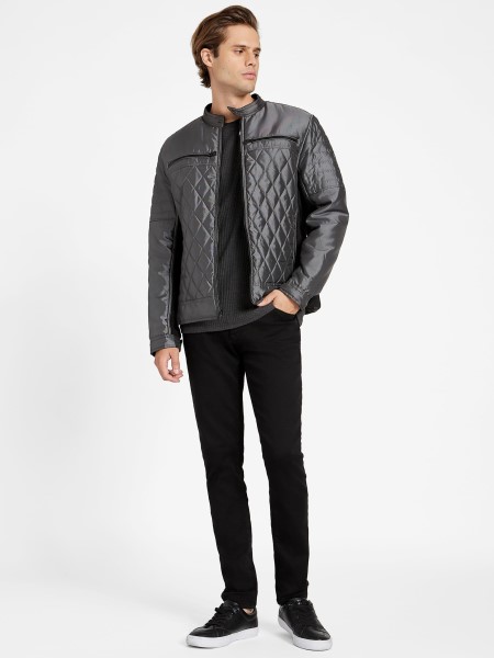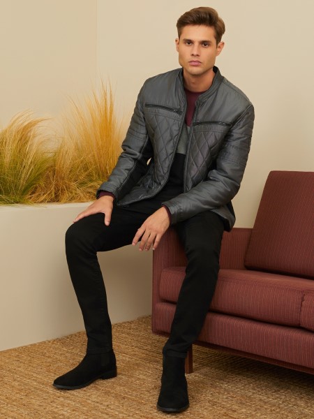 Találja Meg Szabadságát Ebben A Motokabátban. Fényes Steppelt Anyaggal, Motovarrással, Gombos állógallérral, Cipzáras Zsebekkel és Elülső Cipzáras Zárással. újrahasznosított Palackokat Tartalmaz.
