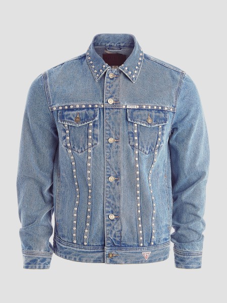An icon with added flair, this denim jacket features rounded stud detailing throughout. Complete with a folded collar, dual chest pockets and front button closures.