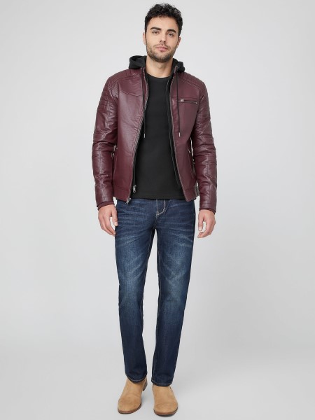 Tegye Teljessé Megjelenését Ezzel A Műbőr Motoros Dzsekivel, Amely Hosszú Ujja Mentén Steppelt Béléssel és Levehető Kapucnis Dzsörzé Pamut Betéttel Rendelkezik. Mellkasi Cipzáras Zseb és Elülső Cipzáros Záródás.