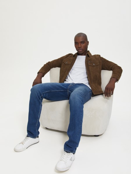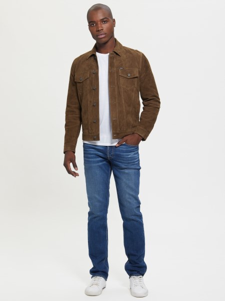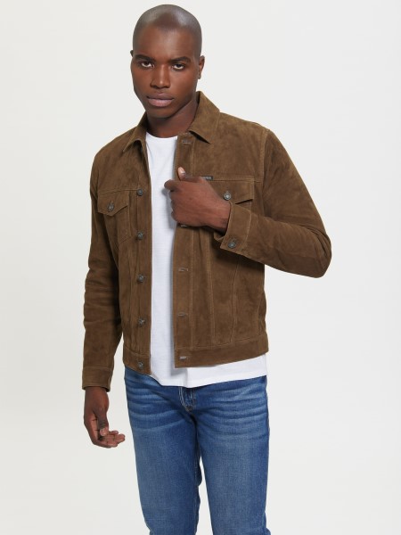 A classic trucker-style jacket upgraded in genuine suede leather and jacquard lining. Complete with a classic folded collar, front button closures and dual chest pockets.