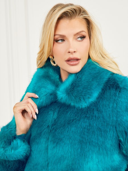 Gyönyörű Jégkék árnyalat Fedi Ezt A Gyönyörű Műszőrme Kabátot, Amely Melegen Tart, és Minden Tekintet Rád Tart. összehajtott Gallérral, Hosszú Ujjakkal, Elülső Zsebekkel és Kampós Zárással.