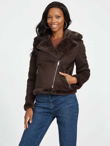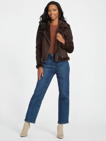 A Hideg Időben Elengedhetetlen, Ez A Moto-stílusú Kabát Műnyíró Szegéllyel, Klasszikus Rovátkolt, Hajtogatott Gallérral, Aszimmetrikus Cipzárral és Oldalsó Cipzáras Zsebekkel Rendelkezik.