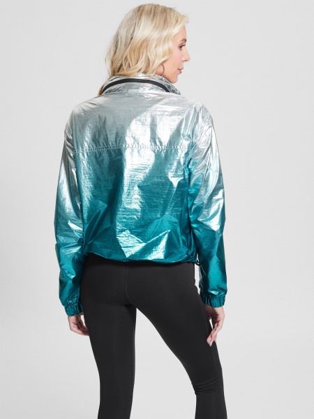 Tartsa Hidegvérét Ebben A Könnyű Széldzsekiben, Amely Ombré Dizájnnal, Cipzáras Elülső Zárással, Levehető Kapucnival és Vágott Szegéllyel Rendelkezik.