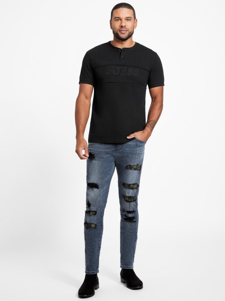 Hímzett Logó Csiszolja Ezt A Kerek Nyakkivágással, Gombbal és Rövid Ujjú Henley Pólót. Organikus Pamut Szál.