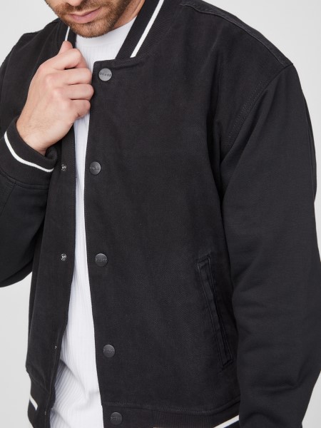 Vintage Ihletésű Repülődzseki Egyetemi Csíkokkal, Színes Blokk Dizájnnal és Gombos Záródással. Pamut Szálakkal Készült.