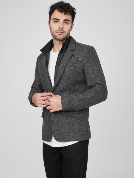 Kezdőlap| Férfiak| Gyapjú Nejlon Betétes Blézer Szénszürke