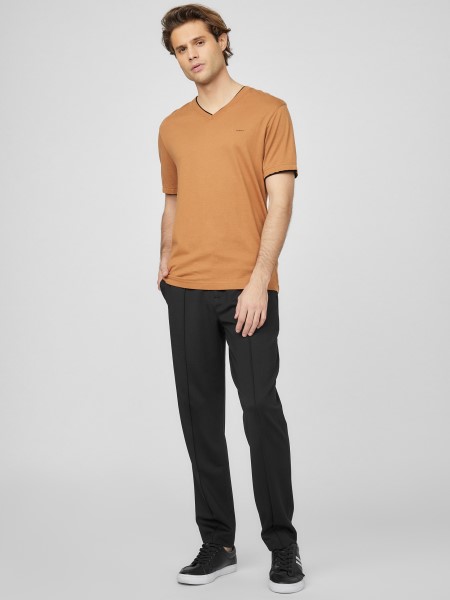 A Kontrasztos Díszítés Laza Egyetemi Hangulatot Kölcsönöz Ennek A V-nyakú Pólónak. Viseld Nappaltól Estig A Könnyed Stílus érdekében.