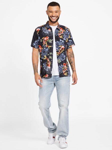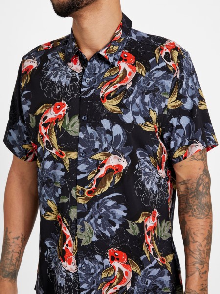 Adj Hozzá Egy Kis Zent A Stílusodhoz. Ezt Az Inget Mindenhol Virágos Koimintával, Rövid Ujjal és Gombos Elülső Zárással Tervezték. Felelősen Beszerzett Erdei Rostból Készült.