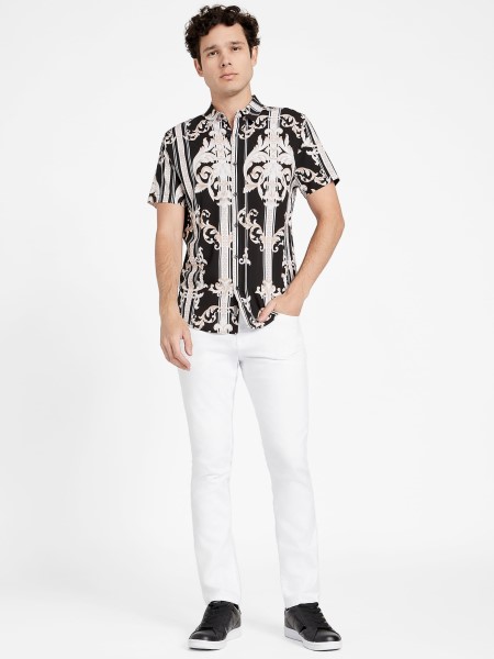 Tűnjön Ki Ezzel A Grafikus Inggel. Mindenütt Barokk Mintával, Függőleges Csíkos Kialakítással, Gallérral, Elülső Zárással és Rövid Ujjakkal. Pamutszálból Készült.