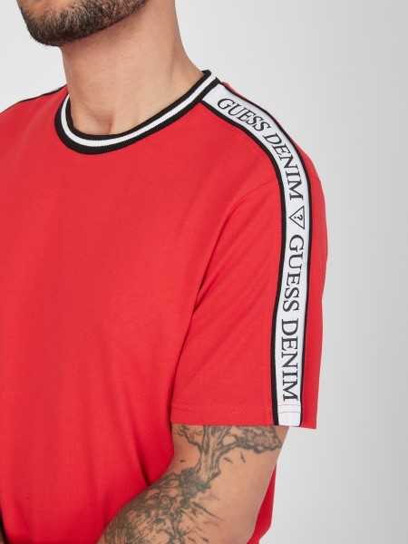 Egészítse Ki Megjelenését Ezzel A Visszafogott Pólóval, Amely Egyetemi Csíkos Nyakkivágással és Logószalaggal Díszített Rövid Ujjakkal Rendelkezik.