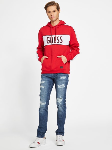 Laza Mindennapi Elengedhetetlen. Emblémás Kapucnis Kapucnis Húzózsinóros Kapucnival, Színes Blokk Dizájnnal Hímzett Logóval, Elülső Kenguru Zsebbel, Bordás Díszítéssel és Hosszú Ujjakkal.