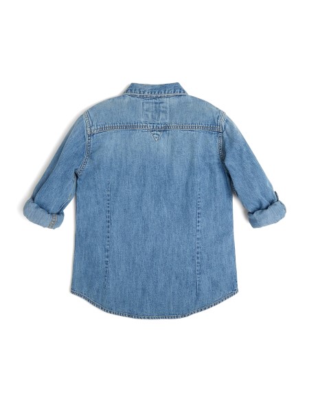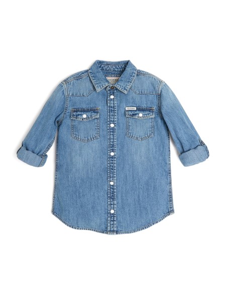 With a beautiful vintage-inspired indigo fade, this long-sleeved denim button-up shirt features a collar and front chest pockets.