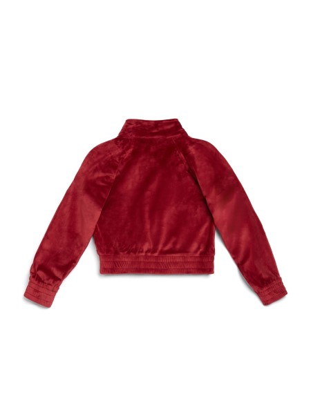 Szórakoztató Alternatíva Számára A Hűvösebb Időben. Ez A Velúr Kabát Festett Nyakkivágással, Cipzáras Zsebekkel, Strasszos Mellkaslogóval, Hosszú Ujjal, Smocked Díszítéssel és Cipzáras Elülső Zárással Rendelkezik. újrahasznosított Műanyagot Tartalmaz.