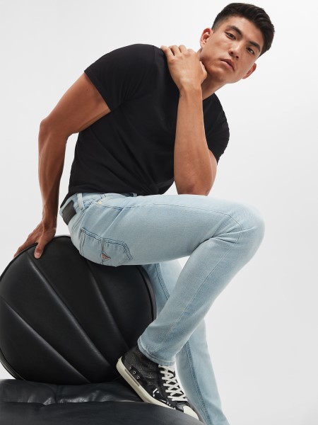 A denim must-own, these skinny jeans feature a mid-rise fit, whiskering and intentional fading. Eco-responsible wood-based fiber.
