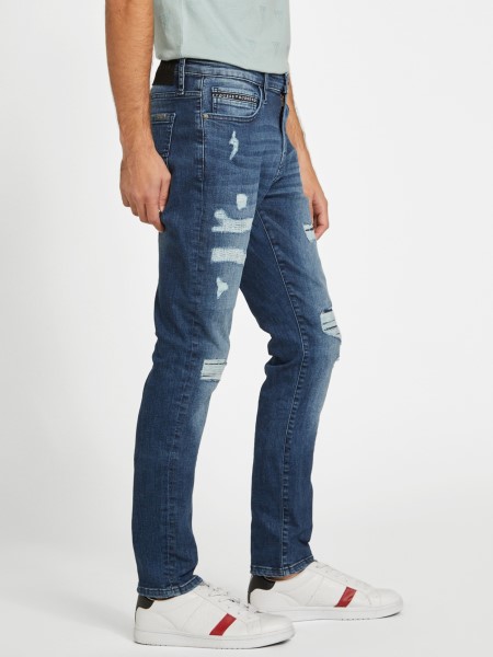 Adjon Némi élt A Stílusához Ezekkel A Tönkrement Farmerekkel. Közepes Mosású Farmer Extrém Zavaró és Kifakulással, Egyenes Szárral, öt Zsebes Szerkezettel, Logószövettel és Cipzárral Záródik.