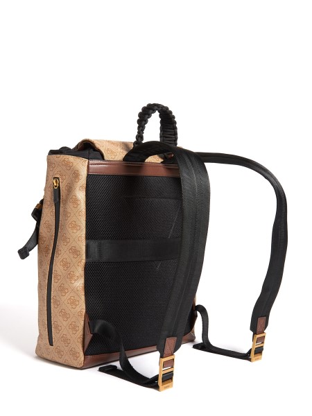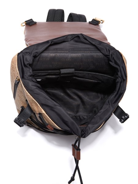 Designed to go where you go, this flexible backpack features fold-over flap closure with zip pocket, logo patch and buckle strap security. Elastic lace-up design at front for added storage.