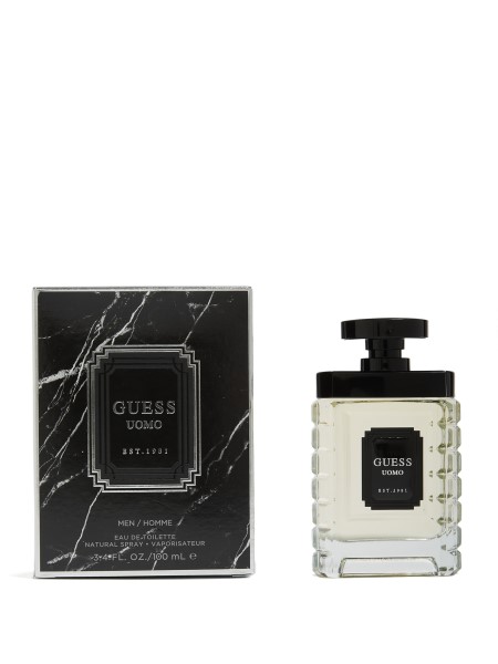 Enter a world of sophistication and style with GUESS UOMO. A familiar blend of earthy cardamom and sage comes together with sensual amber and moody dark woods for a striking scent that feels modern and cool.