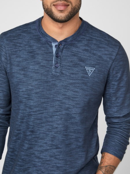 Réteg Ezen A Kötött Henley Ingen, Három Gombos Zárással és Saroklogórészlettel.