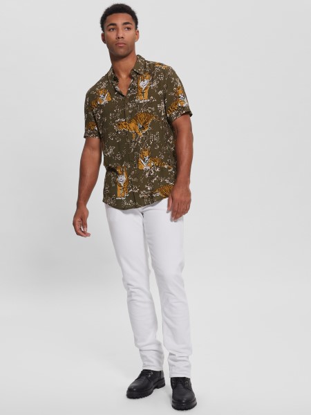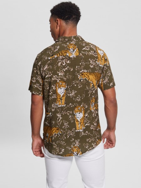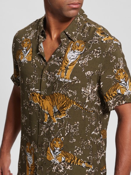 Könnyű Mindennapi Viselet, Ez Az Ing Merész Grafikai Nyomattal, Hajtogatott Gallérral, Rövid Ujjakkal és Ingfarkú Szegéllyel Rendelkezik. Gombos Záródás. Biológiailag Lebomló Fa Alapú Rostokat Tartalmaz.