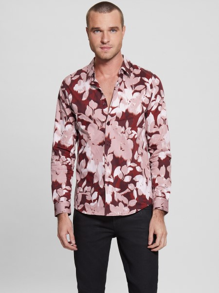 Hosszú Ujjú, Virágmintás Ing, Hajtogatott Gallérral. Gombos Záródás.