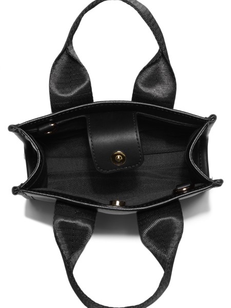 Saffiano Műbőr Mini Táska Logószalaggal Bevont Vászon Felső Fogantyúkkal és Levehető Keresztpánttal. Felhajtható Pánt Mágneses Pattintógombos Zárással.