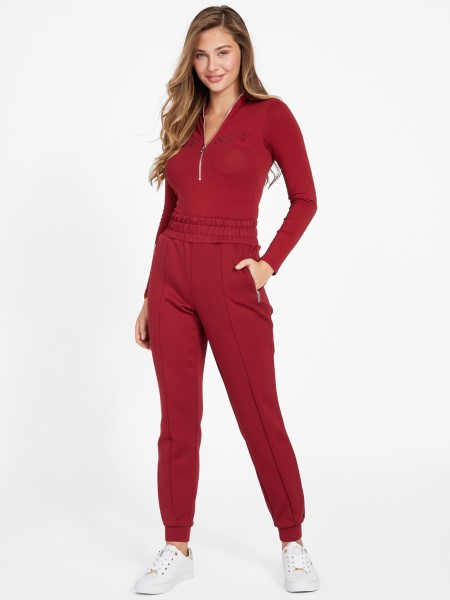 Aktiválja Edzését Ebben A Keskeny Szárú, Rugalmas Derékpánttal, Cipzáras Zsebekkel és Strasszlogóval Ellátott Hátsó Zsebbel Rendelkező Búvár Kötött Nadrágban.