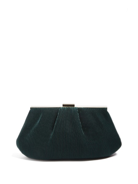 High-class from day to night. This pleated satin pouch features gold-tone hardware with a snap closure and an optional chain-link chain.