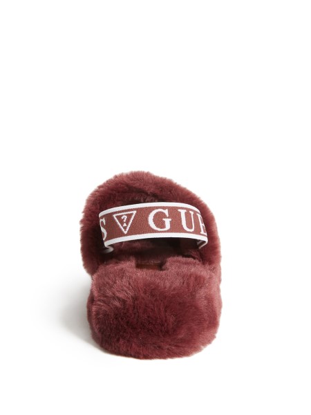 Pihenjen Stílusosan Ebben A Plüss Műszőrme Papucsban, Logószalaggal Ellátott Hátpánttal.
